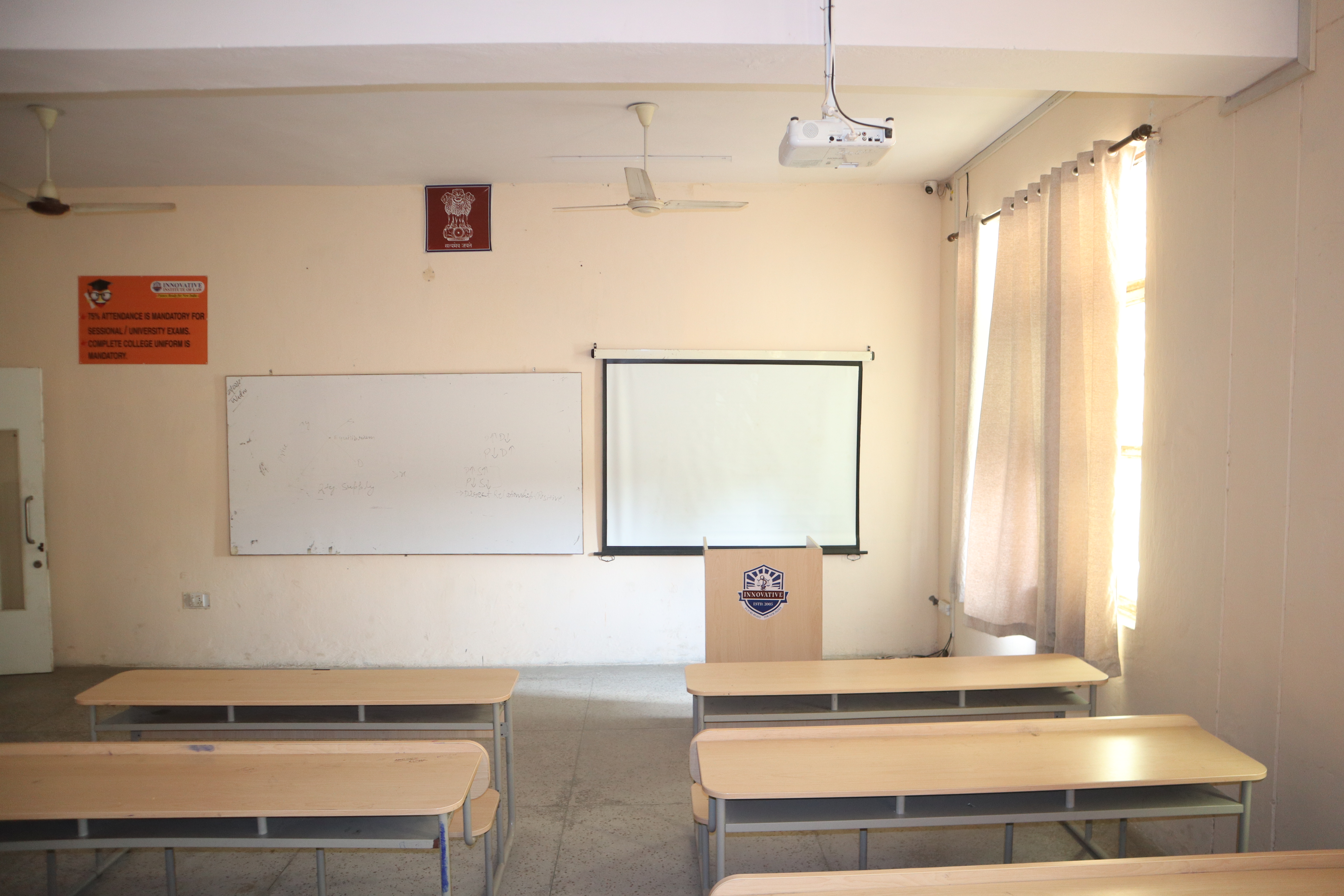 The college emphasises quality classroom teaching and it is the theatre of knowledge which we intend to provide. This develops legal understanding and helps in grooming the students of law. Emphasis on teaching practices also leads to nurturing students a sense of social responsibility which is reflected through the best academics, working in the best environment, and with a regular system of updating knowledge on current social, economic, political issues of legal relevance in purely transparent and accountable setup. The college provides the facilities which help the overall personality development of the students. The classrooms at our college are spacious and acoustically designed. The focus is on every single student for their bilateral process of understanding and growth in the galaxy of thoughts and reasons. We use latest techniques, such as Projectors, Computers, Laptops, Internet Facility, Information through electronic medium & so on, so that our students get accustomed to using such equipments & facilities.