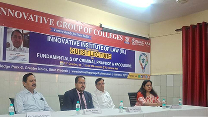 The Innovative Institute of Law, under the Innovative Group of Colleges, organized an enlightening Guest Lecture on “Fundamentals of Criminal Practice & Procedure” on 15 October 2025. The session was designed to provide students with a comprehensive understanding of the principles, procedures, and practical aspects of criminal law.